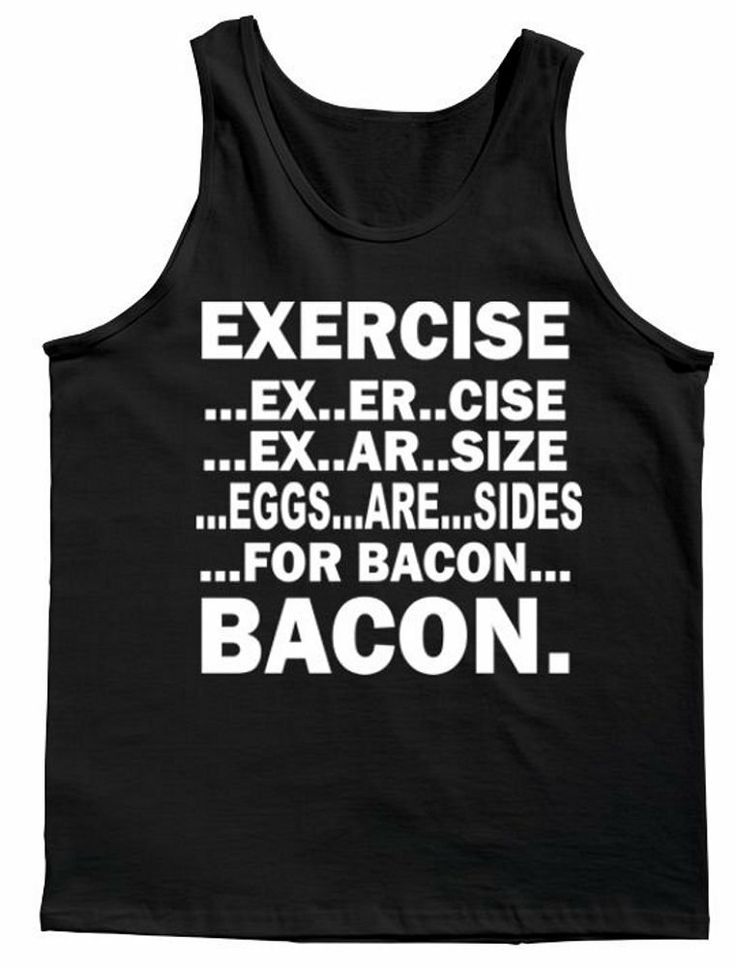 What do you call a gym fanatic who loves food? A GOOF! The problem most of these goofs face is not being able to lessen the amount they eat after a killer workout. Many t-shirt’s have been made to describe what’s going on in the minds of gym fanatics on a daily basis. Enjoy!
