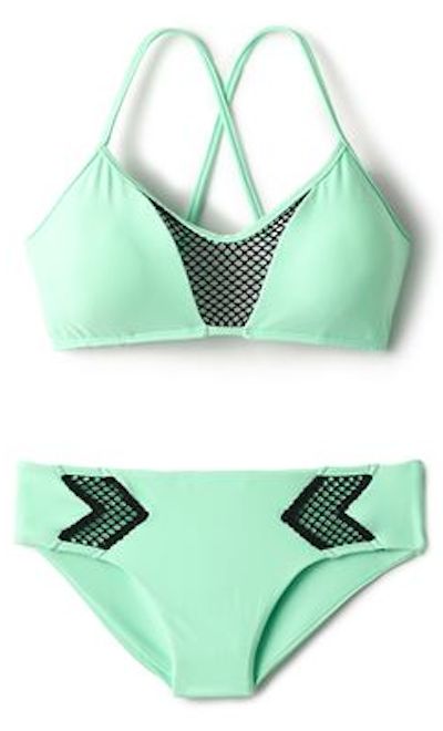 Sporty chicks, pay attention! This is the perfect blend of cute and fierce. The comfort of the top is much like a sports bra, so if you’re playing some beach volleyball you don’t have to worry about your puppies popping out. The mint green color will also make your tan look gorg.